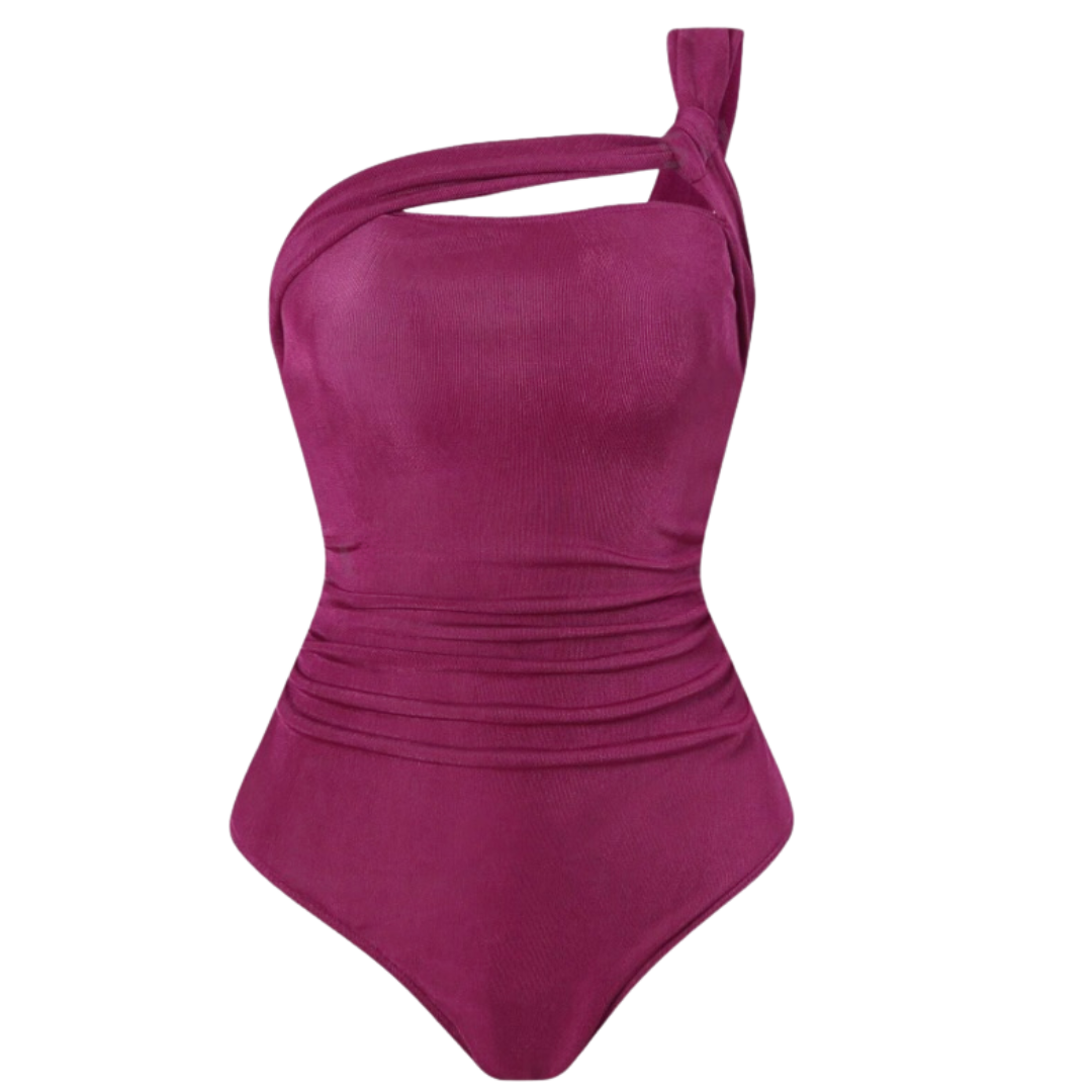 INFO: A stunning wine-red monokini with an asymmetrical cutout top and a low-rise bottom offering cheeky bikini coverage. The slight ruching along the midsection and the stretchy fabric sculpt and enhance your silhouette. This piece combines elegance and comfort, perfect for looking chic while enjoying your time in the water.