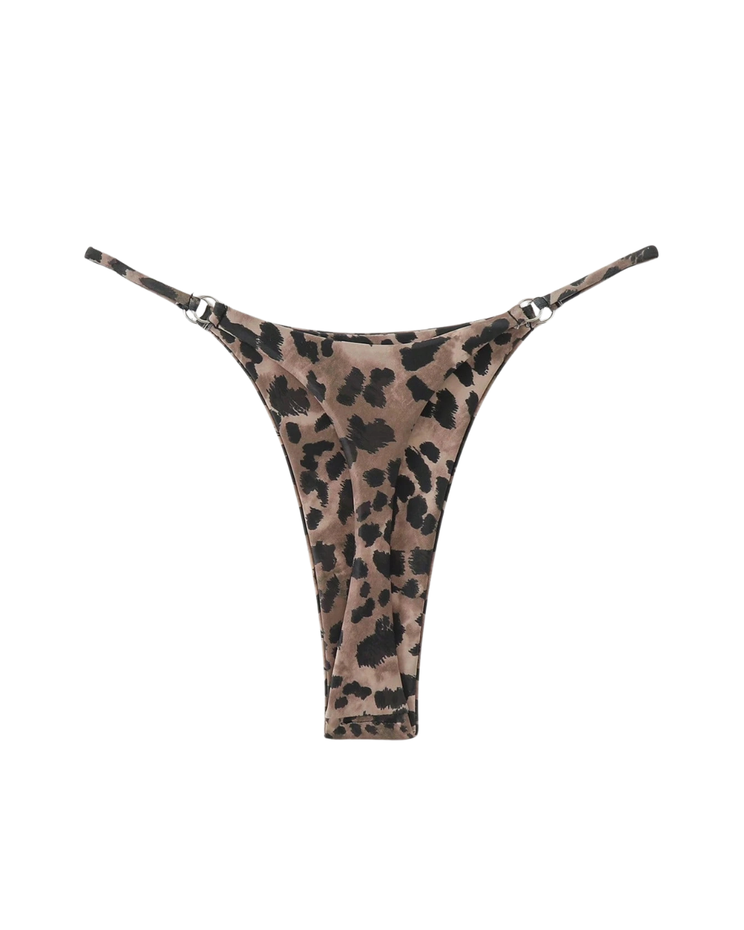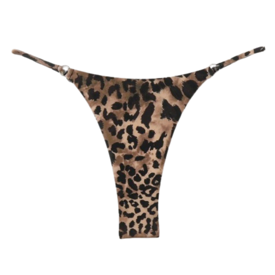 INFO: That bi*ch...Carole Baskin. This bikini bottom takes us back to bold, untamed Tiger King vibes. Featuring thong coverage and minimal front coverage, it’s elevated with metallic loop detailing on the sides. Pair it with a black or neutral bikini top to add a striking pop of pattern and style to your beach look.