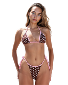 INFO: The name says it all - polka dots are in this summer..and we're all for it with this pink lined itsy bitsy teeny weenie polka dot bikini! A classic cut triangle halter and a high rise bottom with adjustable side ties and cheeky bikini bottom.