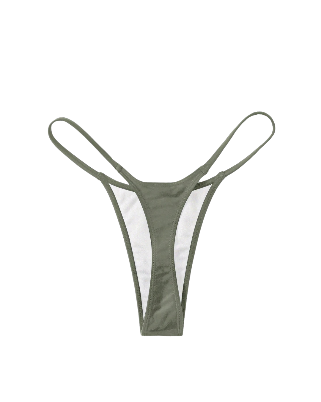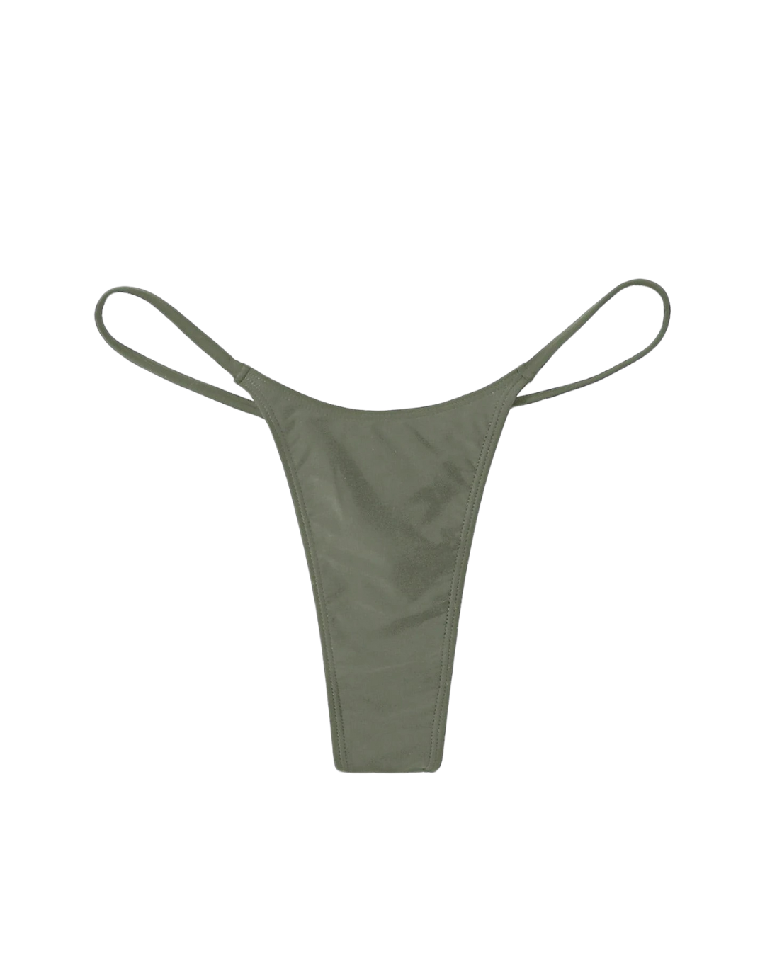 INFO: A stunning olive colored kini bottom with a high-stretch fit, perfect for soaking up the sun. Featuring thong coverage at the back, it’s an ideal choice for tanning. Not part of a set, but pairs beautifully with a neutral kini top.