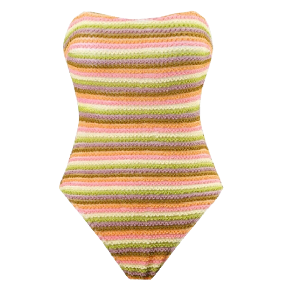 INFO: A vibrant, textured knit material monokini with cheeky bikini bottom coverage that captures the essence of summer. Snug yet slightly stretchy, it’s perfect for pairing with an all-white sarong to create a striking contrast and complete the look.