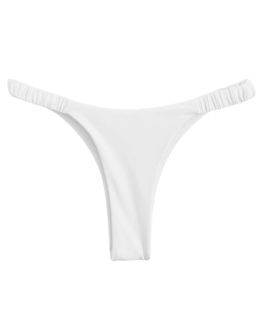 INFO: A sleek, bikini bottom with a thicker band and thong coverage. Its high stretch design makes it comfortable and versatile. Pair it with the Snow Bunny Kini Top or a black or cream bikini top for a simple, stylish look that pairs with anything!