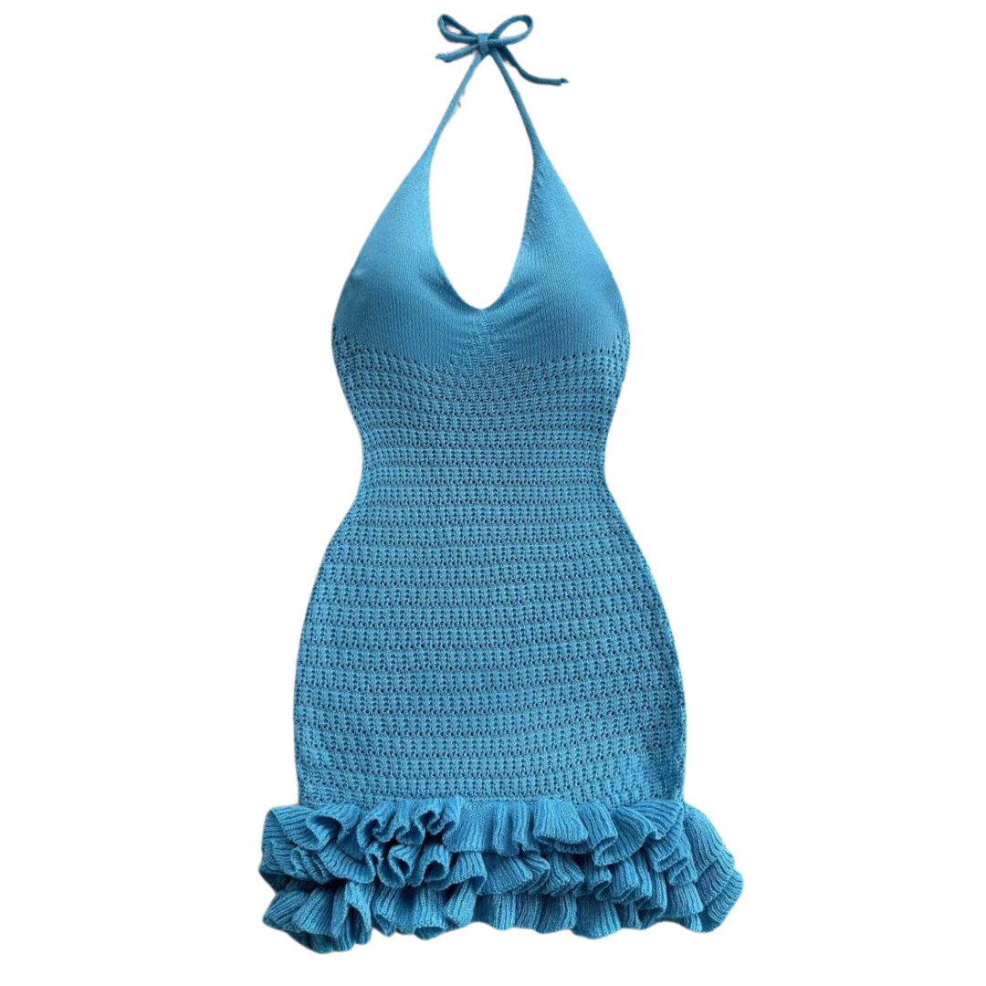 INFO:  Is there really a better paradise than Turks and Caicos? This gorgeous cover-up features a crochet halter-tie design with a tie-front and a stunning turquoise hue, reminiscent of the crystal-clear blue waters. Perfect to layer over your favorite bikini or, like many of our cover-ups, wear it on its own for a bold and beachy look.