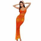 INFO: A stunning orange and yellow hued maxi dress to throw over your bikini after a day at the beach. Reference our size chart for sizing on this cover-up.