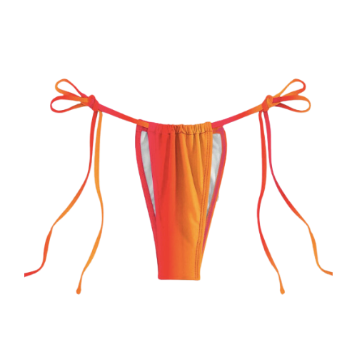INFO: A vibrant ombré kini that reminds us of the sunsets by the sand dunes in Jericoacoara. Bottom has side ties for adjustability - kini bottom has slight ruching for less or more coverage. Part of our Brasil collection. Lined.
