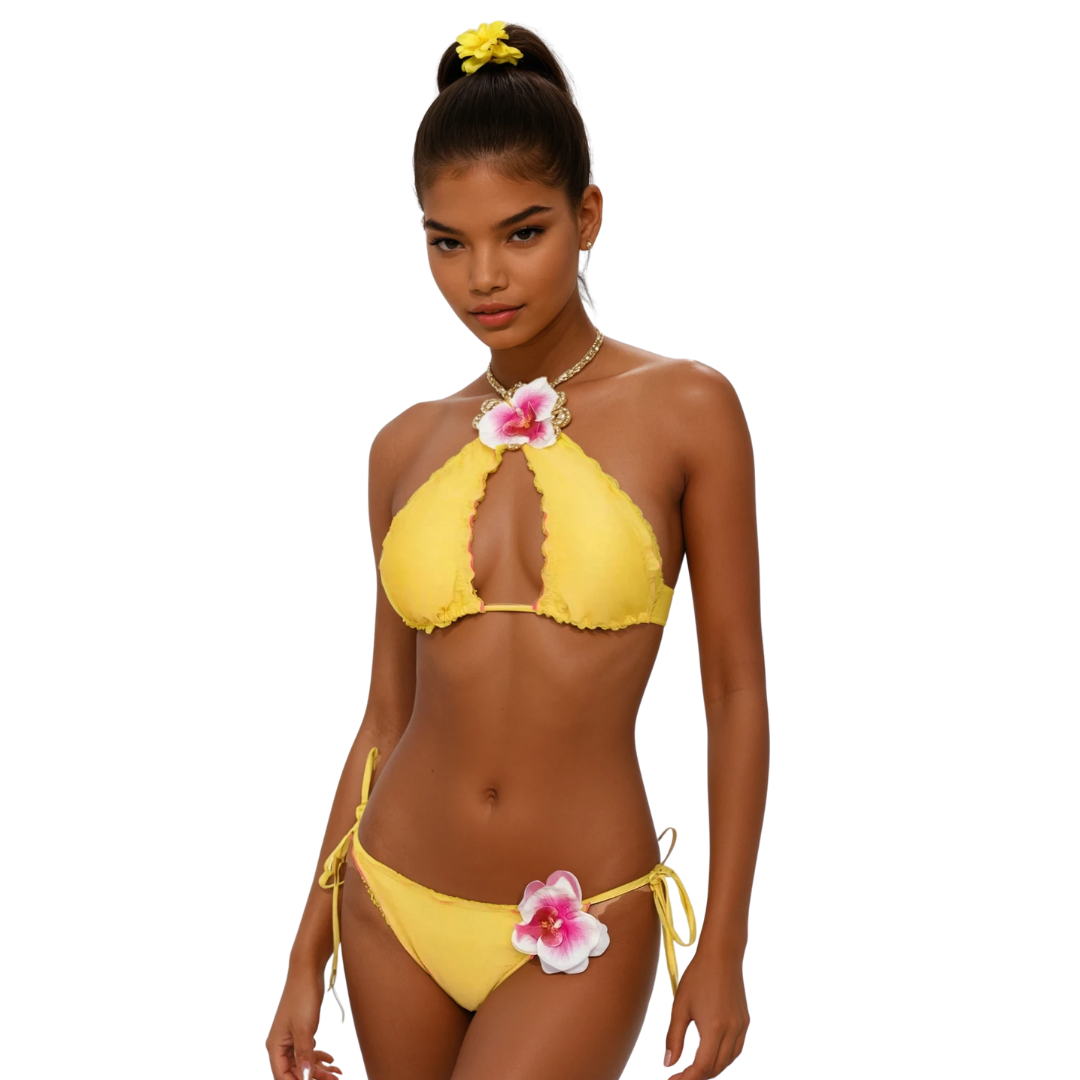 INFO: A stunning vacation inspired kini - find the floral and sunny vibes you find on your next vacation escape/retreat with this swimsuit. Featuring stretchy adjustable waistband and a high cut with cheeky bikini bottom. Pair it with the Sun Escape Kini Top or mix and match with your favorite kini top.